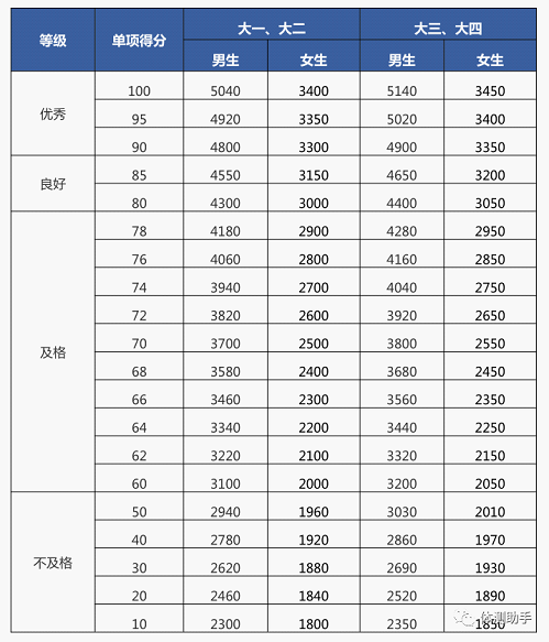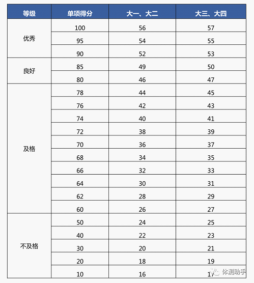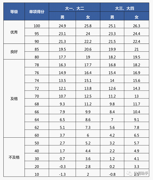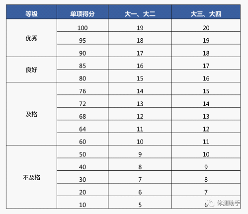 《国家学生体质健康标准》是测量学生体质健康状况和锻炼效果的评价标准,是国家对不同年龄段学生体质健康方面的基本要求,是学生体质健康的个体评价标准。以下为大学生体测各项目相应的评价指标。