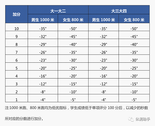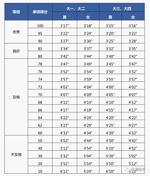 2. 中长跑 (男生1000米,女生800米,单位:分·秒)